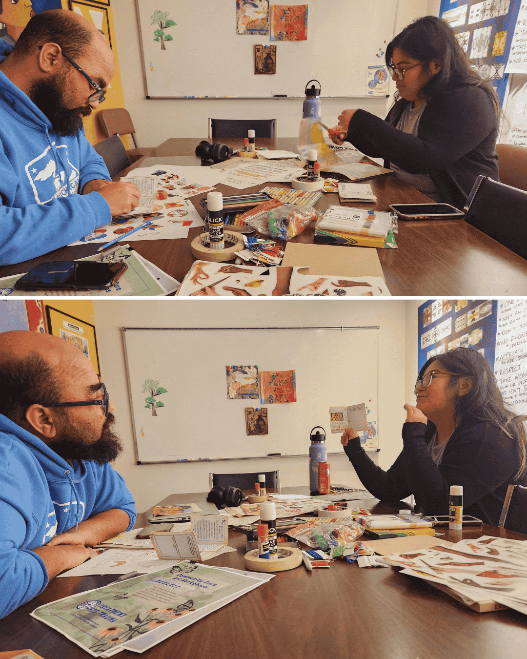 Yasmeen, with a background in art therapy and workshop facilitation, combined her two passions to create a community-healing, conversation-starting toolkit for the Treatment Not Trauma campaign using zine-making and resource sharing. The campaign will use this toolkit to engage their base in the continued fight for expanded mental health services.